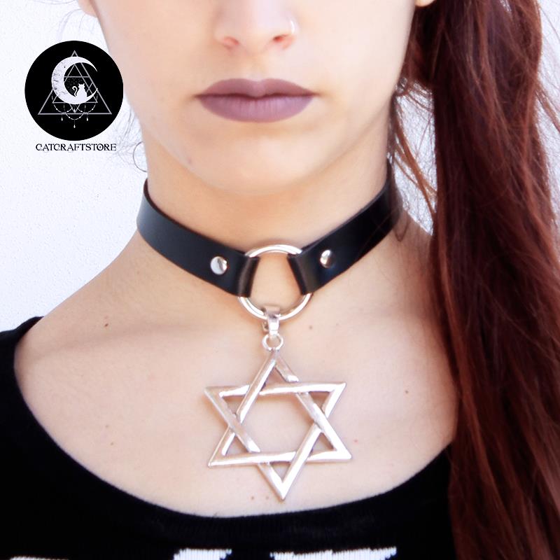 Huge David's Star black choker Adjustable
