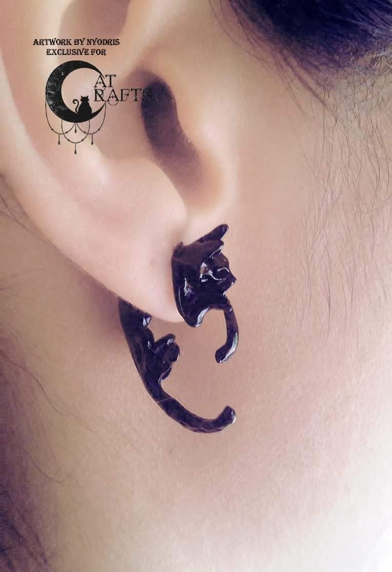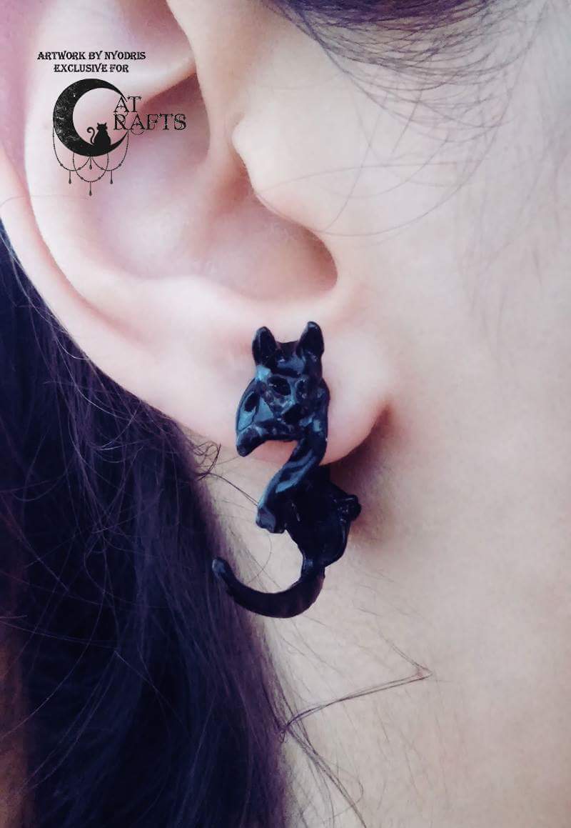 Fake plug black cat earring