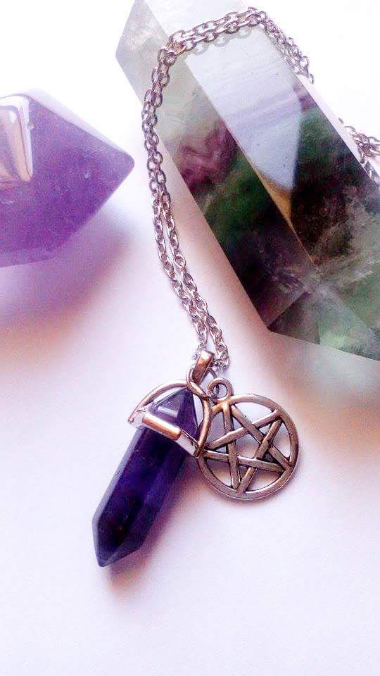Purple fluorite necklace with pentagram