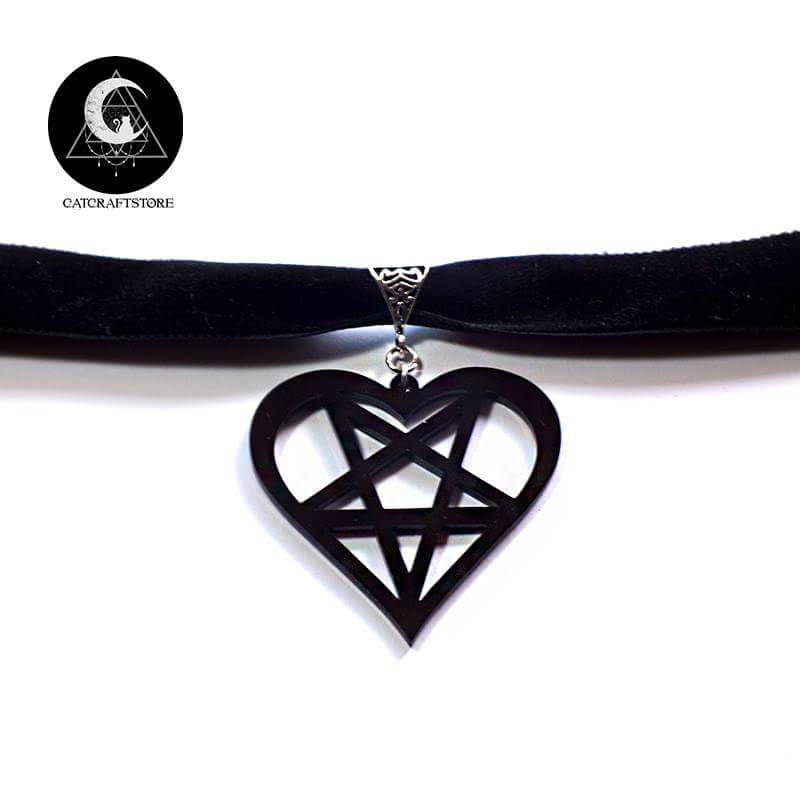 Black velvet heartagram pendant choker