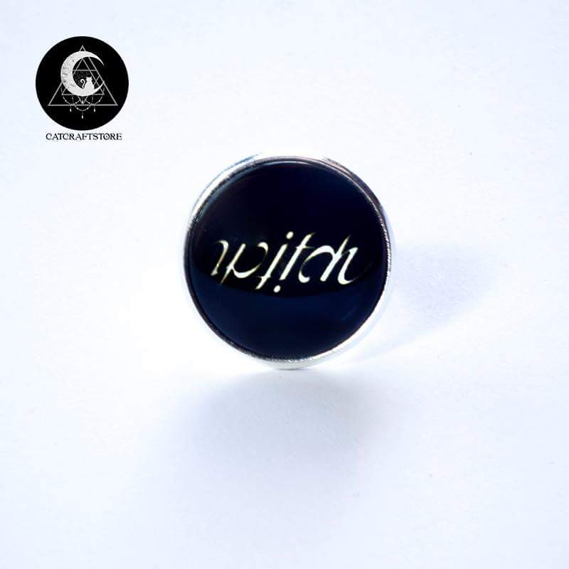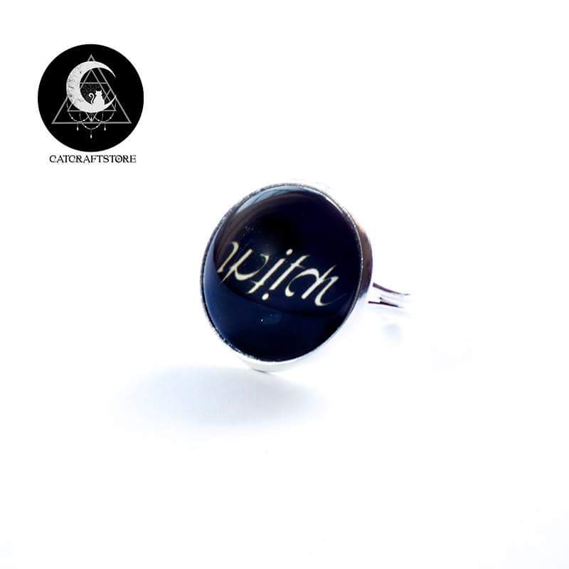 Witch anagram adjustable ring