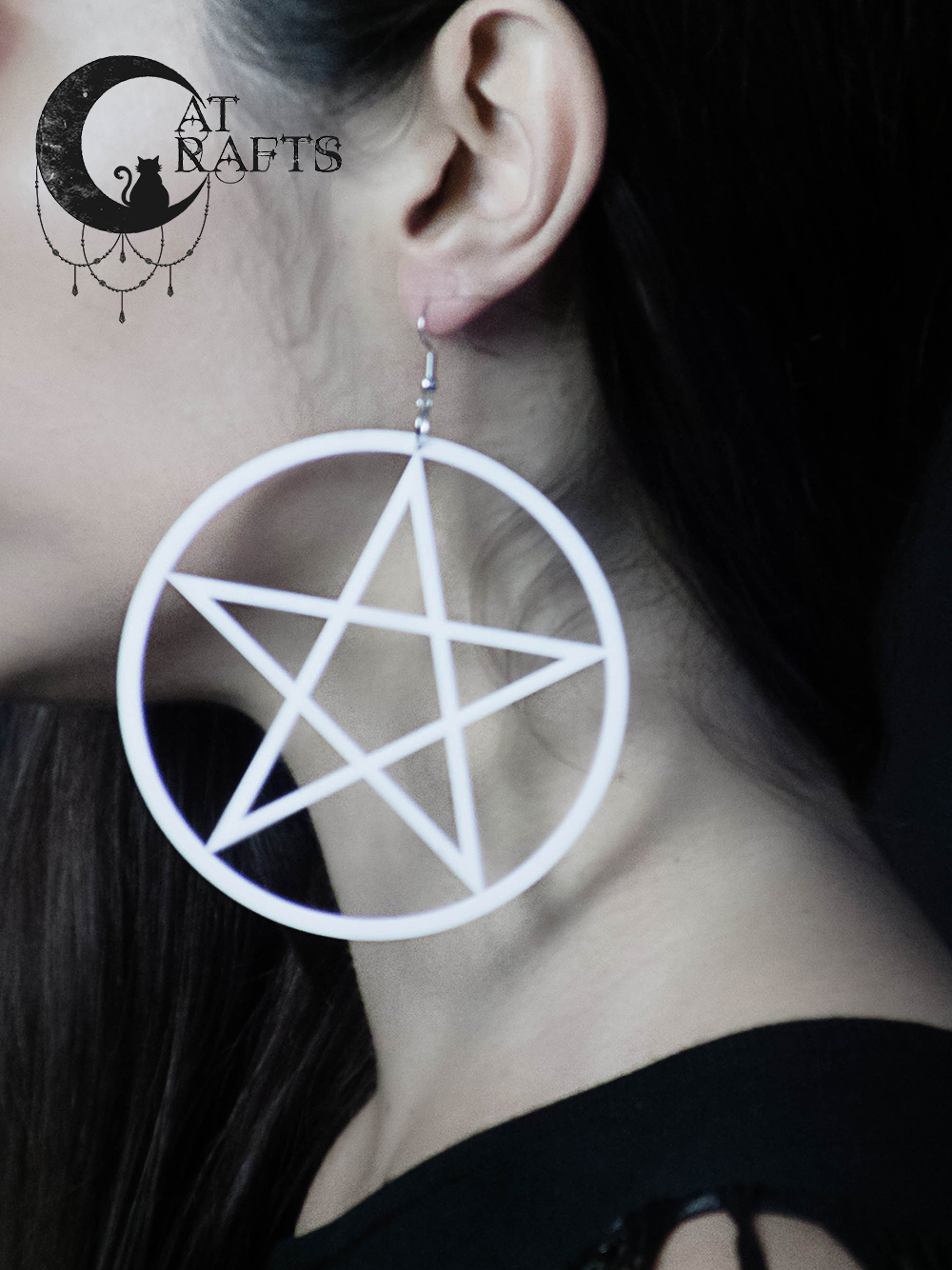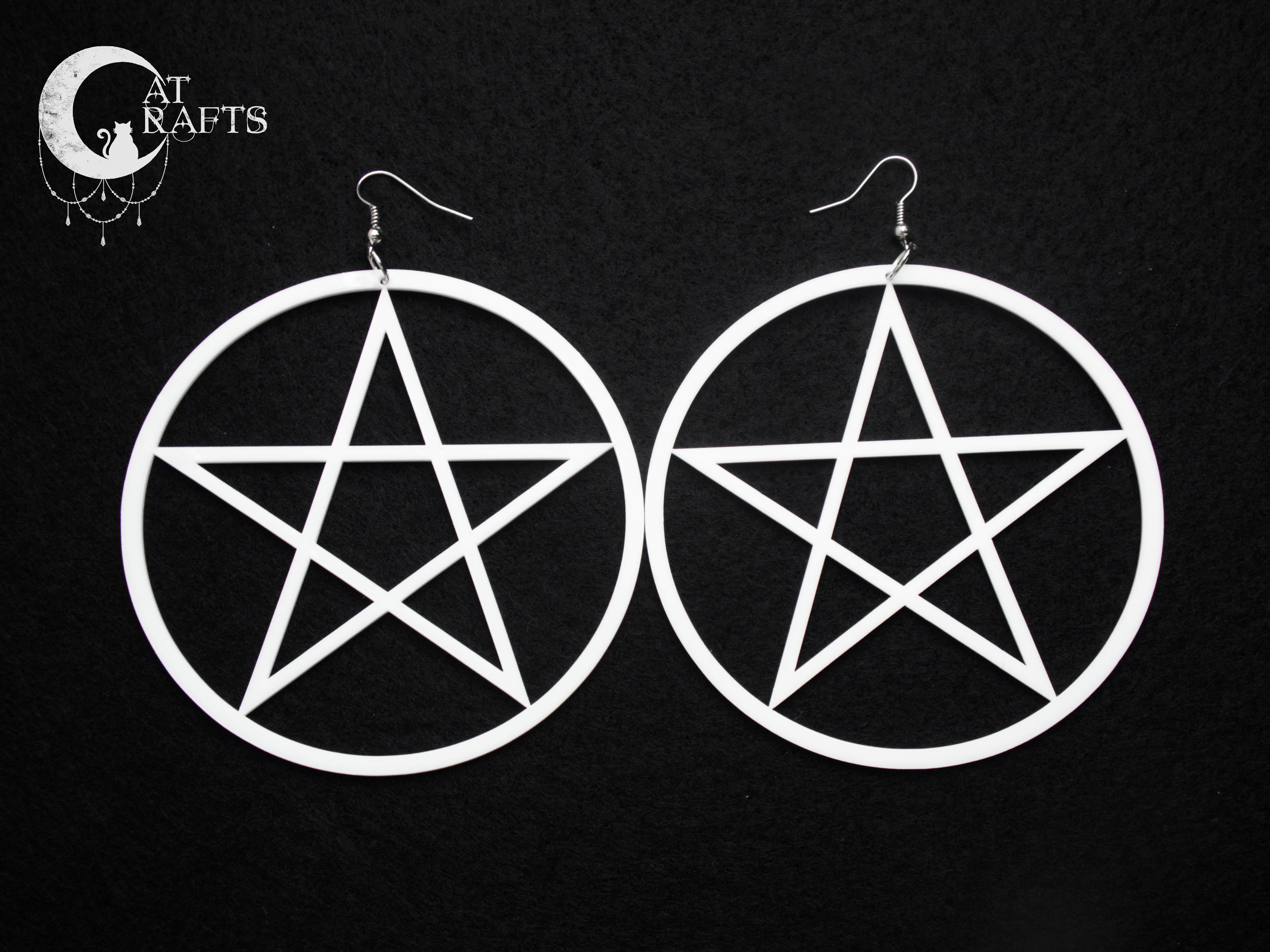 Huge white pentagram earrings