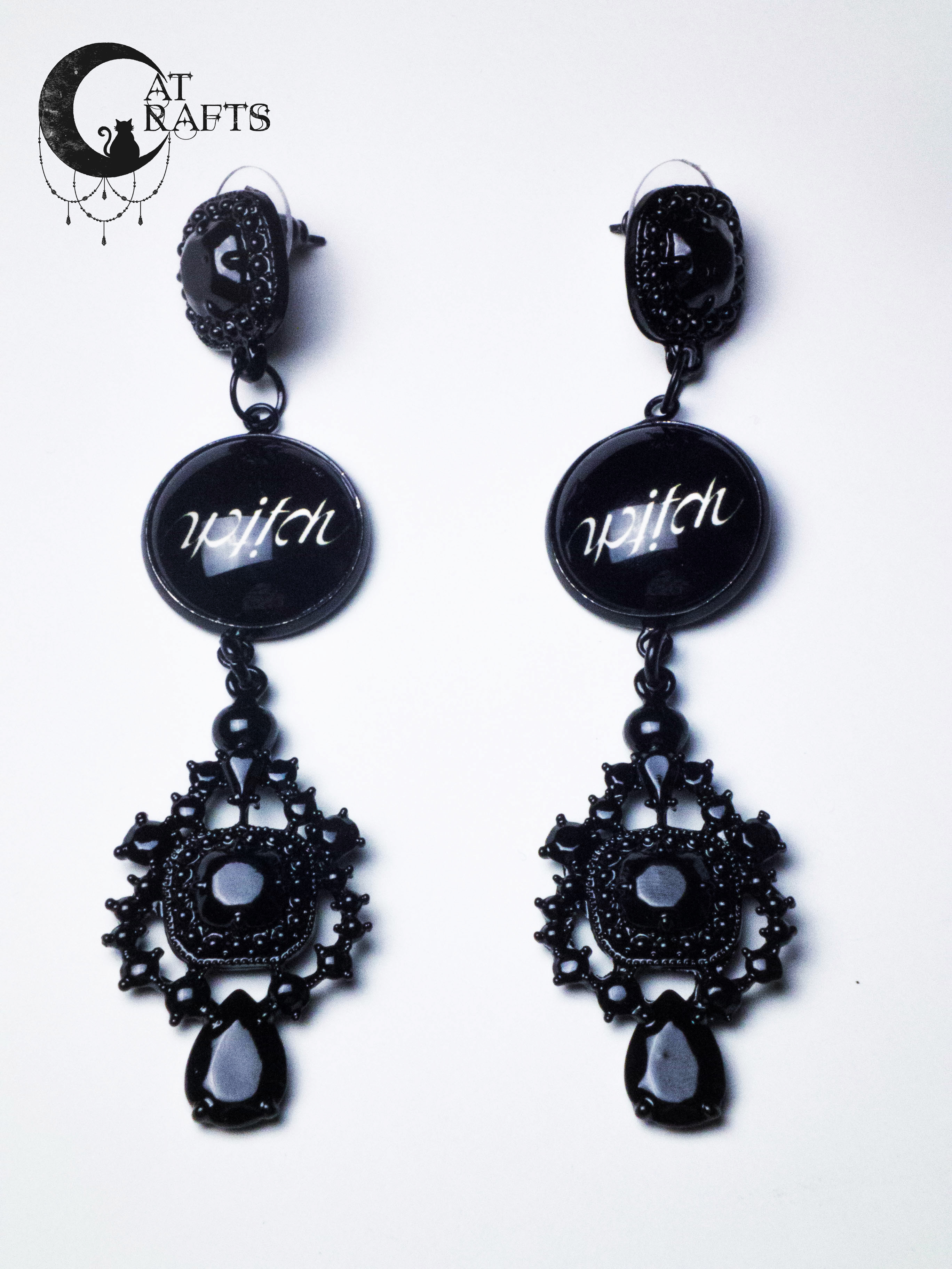 Black witch earrings, dangle and drop gothic witch earrings, dangle and drop gothic wedding earrings