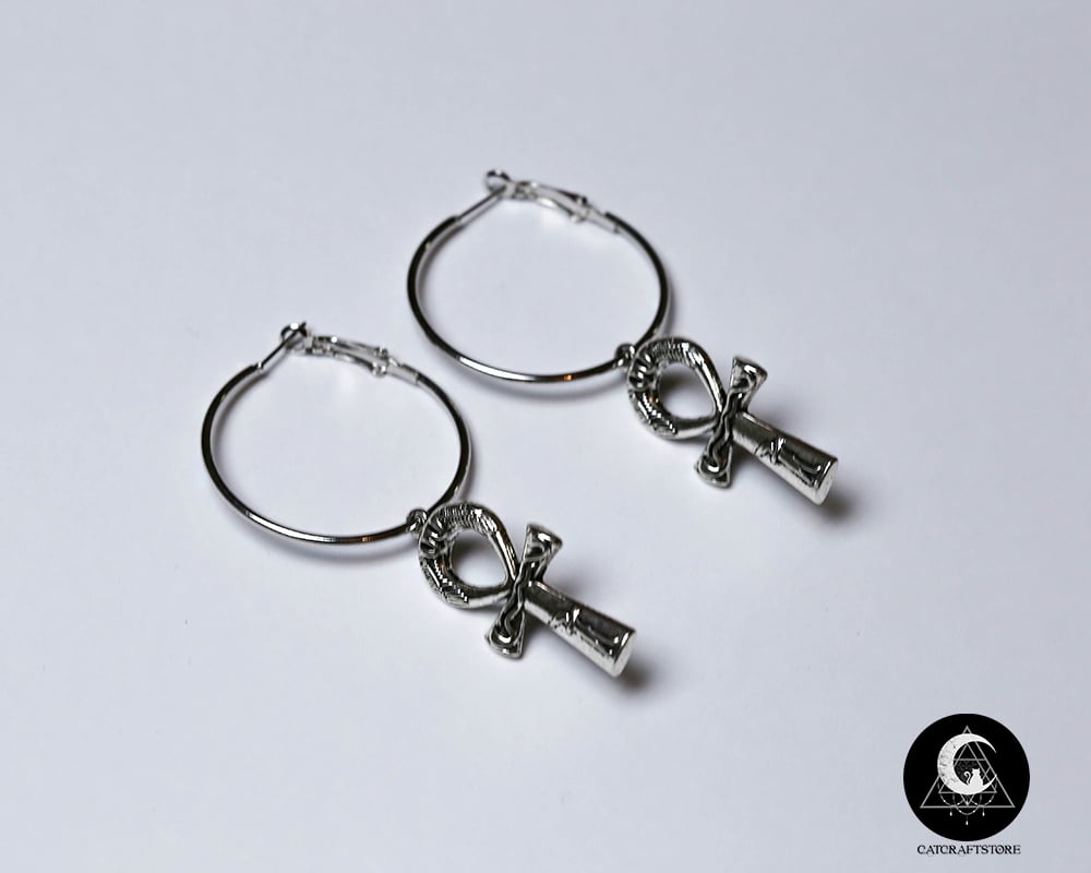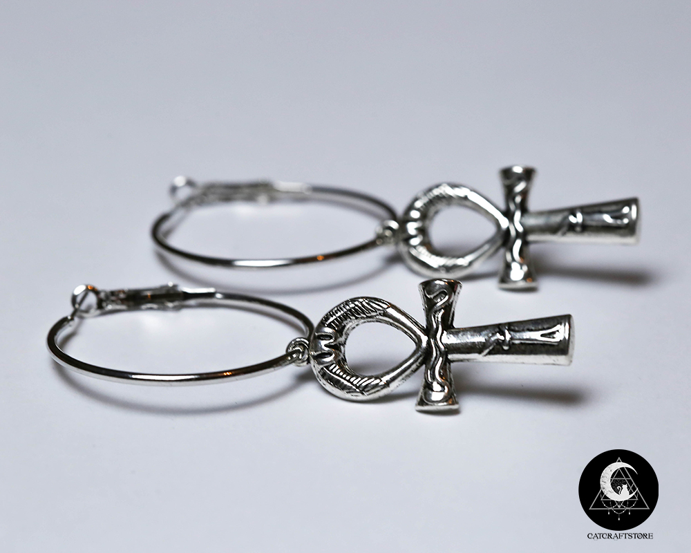 Ankh cross antique silver hoop earrings